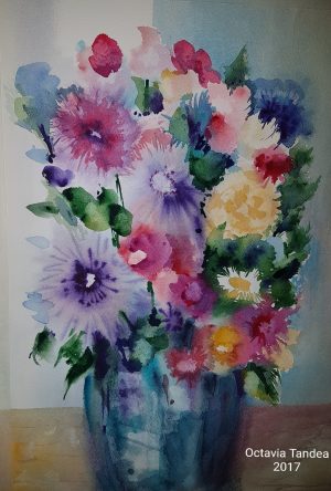 Ejercicio de flores, buscando la fuerza del pigmento. Flores imaginadas, sin previo dibujo, partiendo de una base humeda y dando toques finales en seco.